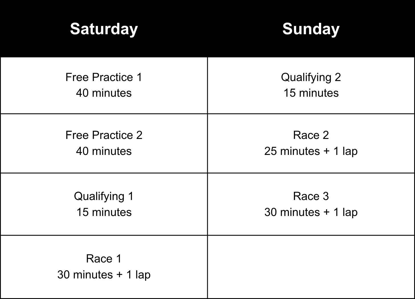 Each weekend is divided into seven sessions: